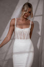 Freddie's bodice and train remain slightly sheer, perfectly contrasting against her lined ivory skirt and championing her intricate and delicate boning.