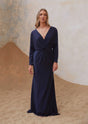 The fitted mermaid silhouette skirt features a sweep train, adding a dramatic and glamorous element to the dress. Pleated detailing on the skirt and bodice, both front and back, enhances the overall look. With inner bra cups and a back invisible zipper, the dress ensures a comfortable and tailored fit. It is fully lined with stretch jersey lining, providing a luxurious finish.