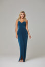 The Claire TO801 bridesmaid dress by Tania Olsen Designs is simple yet stunning style from the soft jersey bridesmaid collection. The Claire features a fitted bodice with a v-neckline set with spaghetti straps that fall into a v-back. From the thinly belted waistline falls a draped floor length skirt with a high leg split. This design is constructed with a soft jersey fabrication that is lightweight, soft and feels like a dream to wear. The simplicity of this style also makes it a beautiful formal or evening gown. The gown’s cut and design is flattering to a variety of shapes and sizes. This bridesmaid dress is available in 10 + colours in sizes AU 4-30.