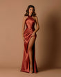 Experience the ultimate in glamour with the NBM1038 by Nicoletta! This stunning design features a flattering halter neck, intricate ruching on the bodice, and a thigh-high split for added drama. Elevate your style and feel confident and empowered in this must-have piece.