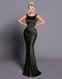 Make a statement in the NBM1031 by Nicoletta — a refined full-length gown designed to flatter and impress. Featuring a timeless boat neckline and elegant ruching across the midsection, this dress offers a beautifully sculpted silhouette. The graceful cowl drape at the back adds a touch of sophistication, making it a stunning choice for any formal event.