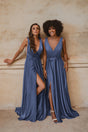 The Napa TO861 bridesmaid dress by Tania Olsen Designs is an effortlessly elegant design that would make the most perfect bridesmaid or formal occasion gown. The Napa is a faux wrap dress featuring a v-neckline, wide straps that sit over the shoulders to form a v-shaped back with a low zipper. From the tie-up waistband falls a flowing floor length skirt with a high leg split. This design is crafted from charmeuse fabrication that is lightweight and feels like a dream to wear. The Napa is available to purchase in 8 colours in sizes AU 4-40.
