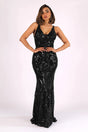 Patterned V-neck low back sequin gown - Black (222255)