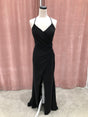 Shimmer Black V-Neck ruched gown (221237) - 10 / Black is backordered and will ship as soon as it is back in stock.
