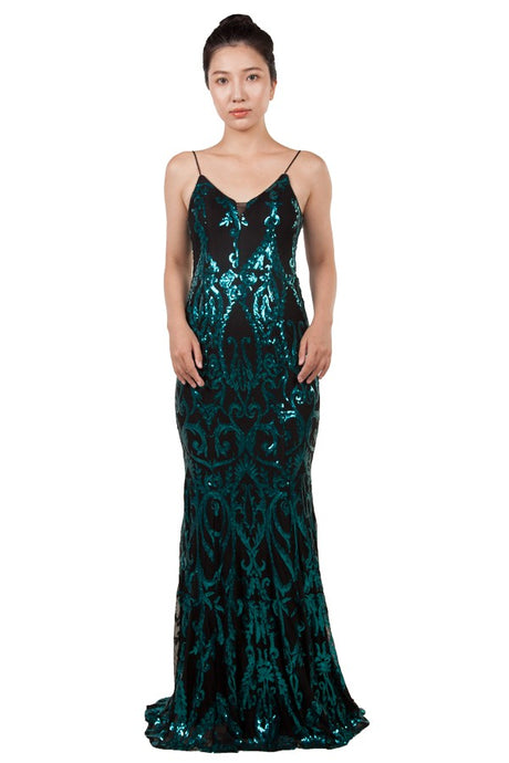Patterned sequin gown - Teal/Black (222278) (Ready to ship!)