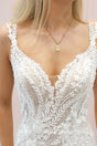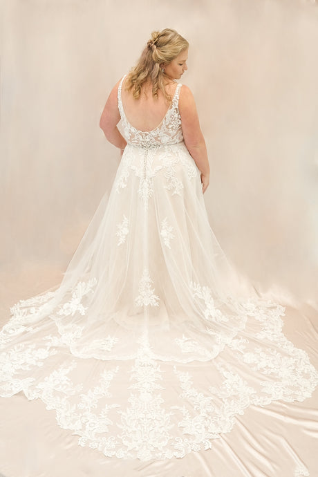 With its flawless fit, exquisite lace detailing, and enchanting train, Valentina is designed for the bride who wishes to make a grand statement on her special day, radiating beauty and grace from every angle.