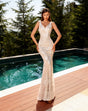 Turn heads in the stunning NC2098 by Nicoletta. Featuring intricate sequin detailing and a daring V-neckline, this full-length gown embodies sophistication and glamour. The elegant mermaid silhouette and wide straps offer a timeless, flattering fit—perfect for making a lasting impression at any special occasion.