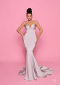 A stunning full length dress by Nicoletta NP146. A mermaid style dress featuring spaghetti straps, a mesh insert and a floor sweeping train.