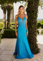 Hyacinth—crafted from Sparkle Jersey & Lace Applique, and available in Turquoise & Red. Hyacinth demands attention with its captivating silhouette. The plunging neckline, accentuated with an illusion tulle center front cutout, exudes modernity while maintaining modesty. Its fitted silhouette ensures a commanding presence, embodying feminine allure. Featuring built-in bra cups for support and a lace-up back detail, Hyacinth is designed to elevate your confidence and empower your presence. Available in sizes AU 4-40 / US 00-36, Hyacinth isn't just a dress—it's a symbol of individuality and strength, tailored for the woman who dares to make a statement and leave an unforgettable impression.