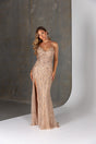Dazzle in our show-stopping Nyx formal dress by Tania Olsen Designs, crafted from shimmering beaded tulle for a look that’s equal parts glamorous and refined. The illusion corset bodice, detailed with boning and built-in bra cups, offers a sculpted, supportive fit while showcasing intricate beadwork from front to back. Spaghetti straps add a delicate touch, while the fitted silhouette hugs the body and leads into a daring high leg split for added drama and movement. The nude-lined skirt enhances the gown’s dimensional sparkle, while an invisible back zipper ensures a flawless finish. Perfect for formals, evening galas, or any occasion that calls for a bold, unforgettable look.