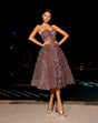 Introducing the stunning NC2056 by Australian designer Nicoletta—a perfect blend of charm and sophistication. This captivating A-line midi showcases delicate embroidery throughout, paired with a strapless, corset-inspired neckline for a structured yet feminine look. A sheer bodice and back lend a subtle hint of allure, making this piece both graceful and fashion-forward.