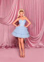 Turn heads in the NC3087 Cocktail Dress, a sparkling strapless mini that exudes glamour. The sequin- and bead-adorned boned bodice provides structured sophistication, while the layered tulle A-line skirt adds a fun, flirty flair. Ideal for making a striking impression at any event.