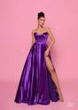 A gorgeous full length dress by Nicoletta NP158. This strapless design features an edgy sweetheart neckline, thigh high split and a-line skirt.