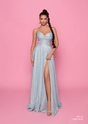 A stunning full length dress by Nicoletta NP176. A flattering strapless design featuring a draped overlay and crafted in a shimmer material.