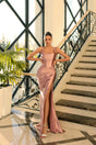 Make a statement in the NC1074 by Nicoletta — a refined yet contemporary design perfect for special events. Showcasing a sleek straight neckline with supportive straps, this dress features a figure-hugging bodice and a beautifully ruched, draped skirt that enhances your silhouette. The side leg split adds an extra touch of elegance and allure, ideal for formal evenings or stylish nights out.