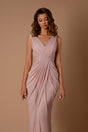 Step into timeless elegance with the NBM1001 by Nicoletta. Designed with a flattering V-neckline, wide shoulder straps, and soft, flowing draping, this gown exudes sophistication. Crafted from luxurious Lycra Mesh fabric, it features a wrap-style front split that adds a graceful and modern touch.