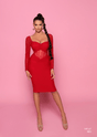 NP167 by Nicoletta features beautifully designed long mesh sleeves and a flattering sweetheart neckline with ruching. It also has a v-ruched shaped waist and is midi length, making this an elegant and stylish piece for any occasion.