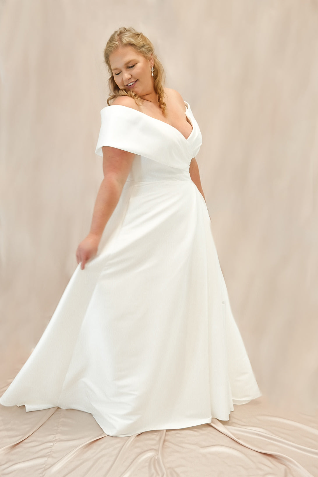 Sample sizes vary by designers but we carry a range from bridal sizes 6-32 with the majority being 10-26. If your sizing is outside that range, not to worry, we have creative ways of making sure you can experience the look of your desired dress! Our gowns are made to order so depending on the designer we can order from a size 0-40+!
