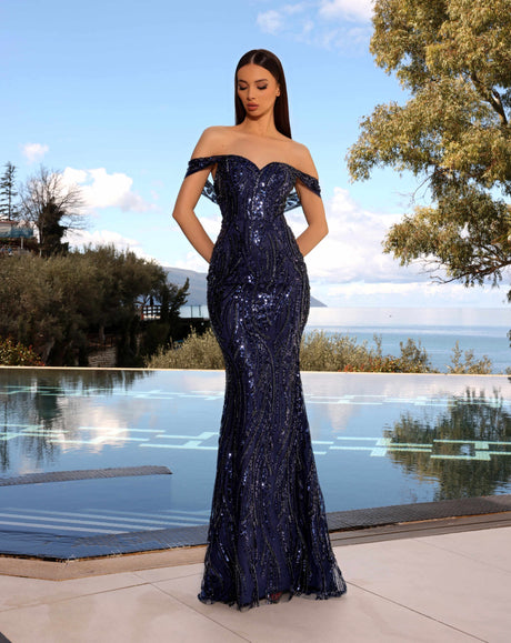 Lace dress with Chiffon overlay Navy (219303)