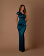 Make a statement with the NBM1015 by Nicoletta. Showcasing an elegant one-shoulder silhouette with soft ruffle detailing, this dress features a beautifully ruched bodice and waistline for a flattering, sculpted shape. The sleek straight skirt with a back split adds refined sophistication, perfect for formal events or special occasions.