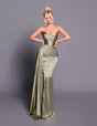 Make a statement in the NBM2001 by Nicoletta. This chic strapless gown features elegant ruched detailing and a figure-hugging silhouette for a sleek, flattering fit. A dramatic right-leg split and draped side overlay add movement and sophistication to the design.