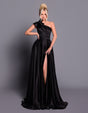 Turn heads in the NBM2003 by Nicoletta, a beautifully crafted one-shoulder gown that combines timeless elegance with modern flair. Featuring a pleated neckline with soft ruffle detail and a structured bodice with built-in cups, this design offers a supportive and flattering fit. The flowing A-line skirt, crafted from luxurious satin, is finished with a chic leg split and functional pockets — perfect for any special event. Available in inclusive sizes.