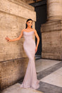 Embrace sophistication and luxury in the NC1025 by Nicoletta. This strapless, figure-hugging dress is crafted from radiant lurex fabric, designed to enhance your natural curves. The corset bust with an illusion cowl neckline adds a refined touch, making this gown perfect for formal occasions or a glamorous night out.