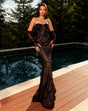 Make a statement in the NC2060 by acclaimed Australian designer Nicoletta. This striking strapless gown features a sweetheart neckline, padded bust, and a sleek, figure-hugging silhouette that flows into a dramatic mermaid skirt. Delicate beaded embellishments add a touch of glamour, while detachable sheer sleeves offer versatile elegance.