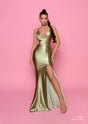 NP143 features a cowl neckline, thin straps, an open tie up back, a leg split and a small back train. Its cowl neckline creates an effortless elegance, while the thin straps provide support and style. The open tie up back allows for easy adjustment for a perfect fit. The leg split adds an unexpected touch to the classic look, and the small back train adds a hint of drama.