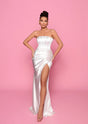 A gorgeous full length dress by Nicoletta NP165. A strapless style featuring a boned bodice and flattering ruching.