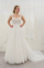 Step into charm with our Codi gown, featuring modern lace and a soft neckline that flatters every angle. The exposed boning adds a touch of edge, while the flowing tulle skirt brings whimsical movement. Perfect for those who love a playful twist on classic elegance. Available to order with a lined bodice, and further customisations available to make your dream dress uniquely yours.