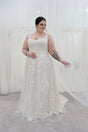 Our Heather gown features a beautiful soft lace and a flattering scoop neckline that beautifully hugs your curves in all the right places.