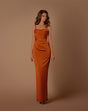 Make a statement in the NBM1024 by Nicoletta. Crafted from soft suiting fabric, this refined design features delicate spaghetti straps, a ruched sculptural bodice, and a sleek pencil-style skirt for a flattering silhouette. Intricate pleated detailing across the bust and torso adds a touch of modern elegance, making this piece a standout choice for any formal occasion.