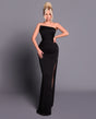 Make a statement in the NBM2011 by Nicoletta. This striking design features a pleated, strapless asymmetrical neckline and a structured bodice with built-in cups and boning for a beautifully sculpted silhouette. Crafted from luxe soft suiting fabric, the pleated pencil skirt includes a leg split for added elegance. Available in plus sizes to flatter every figure.