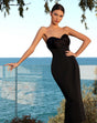 Enhance your wardrobe with the NC2024 by acclaimed Australian designer Nicoletta. This elegant dress features a strapless bodice with padded satin pleated detailing and a fitted silhouette that gracefully transitions into a chic pencil-style midi skirt. The back split adds a refined touch of sophistication, making it an essential piece for any style-conscious individual.