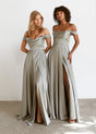 Introducing the Morel Bridesmaid Dress – a stunning embodiment of elegance and refined style. Expertly crafted from luxurious Light Satin, this floor-length gown is available in an array of sophisticated shades such as Sage, Midnight, and Pale Blue, perfectly complementing any bridal palette.