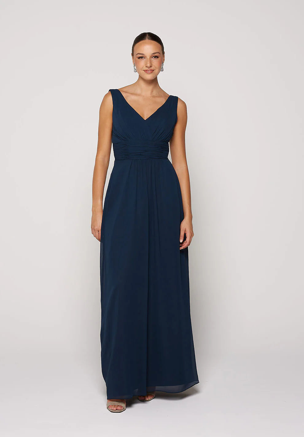 Discover the timeless charm of the Amber Bridesmaid Dress. Featuring a classic V-neckline and modest wide straps, this gown radiates elegance and poise. Its soft A-line shape flows gracefully, providing both comfort and style for your bridal party. Made from luxurious georgette fabric, the dress boasts a light, airy quality that complements any wedding style. Available in a stunning selection of 30 colours, the Amber Bridesmaid Dress makes coordinating with your wedding palette effortless.