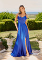 Introducing Mallow, a captivating ensemble available in Royal Blue, Red, and Emerald. This dress exudes sophistication with its sweetheart neckline adorned with a draped cowl feature. The exposed boning corset-like bodice detail adds an edgy touch to its liquid satin fabric. Designed with spaghetti straps and built-in bra cups and boning for bust support, Mallow ensures both style and comfort. Its A-line silhouette flatters various body shapes, while the thigh-high split adds a hint of drama. Complete with an invisible zip closure. Available in sizes AU 2-40 / US 00-36.