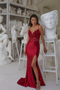 The Tarni Formal Dress, an enchanting fusion of contemporary allure and timeless sophistication, is crafted from a luxurious blend of stretch satin and intricate lace appliqué.