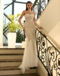The NC1027 by Nicoletta is a statement of luxury and sophistication. Featuring a corset-style bodice with a padded bust and a fitted silhouette that gracefully flows into a voluminous tulle mermaid skirt, this dress is designed to captivate. Sparkling sequins and intricate beading add glamour, while detachable sheer sleeves elevate the overall look. Perfect for any special occasion, this gown will leave a lasting impression.