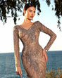 The stunning gown NC2008, by Australian designer Nicoletta is truly a showstopper. Featuring intricate beadwork, this slim-fitting dress showcases a seductive V-neckline and trendy, figure-hugging sleeves. The look is completed with a flattering mermaid skirt and a subtle train at the back—simply breathtaking.