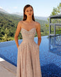 Elevate your evening look with this stunning strapless V-neck gown. Adorned with delicate sequins, the gown features a cinched waistline and a full floor-length skirt that beautifully accentuates your silhouette. The lace-up back ensures a tailored fit, while side pockets add a touch of practicality. Perfect for any special occasion, this gown will have you feeling confident and stylish all night.