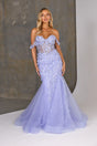 Introducing the Romy dress, a breathtaking combination of elegance and intricate detailing. This stunning piece features an illusion bodice with boning for structure and built-in bra cups, ensuring a flattering fit. The strapless design showcases a sweetheart neckline, beautifully complemented by exquisite 3D lace appliquŽ detail on both the bodice and skirt. The fitted silhouette flows into a mermaid-style skirt lined in satin, topped with a delicate glitter tulle overlay for added drama and sparkle. Attached sheer straps provide versatility, allowing them to be worn on or off the shoulder. An invisible zipper with a hook-and-eye closure, along with a lace-up back, ensures a secure fit. Finished with a sweep train, the Romy dress is the perfect choice for any formal occasion, seamlessly blending timeless beauty with modern flair.