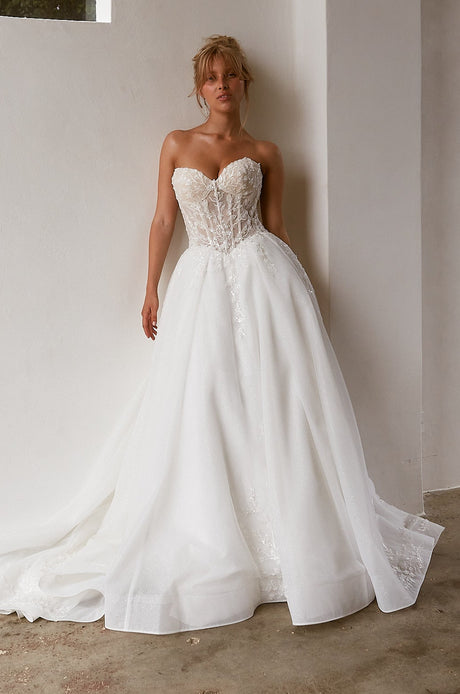 Designed with a modern bride in mind, our Pearl Collection brings fresh interpretations to traditional silhouettes. From soft A-lines to structured ballgowns, each design blends graceful details with clean, contemporary lines. Luxurious fabrics, delicate embellishments, and refined finishes come together to create gowns that are effortlessly romantic and beautifully wearable.