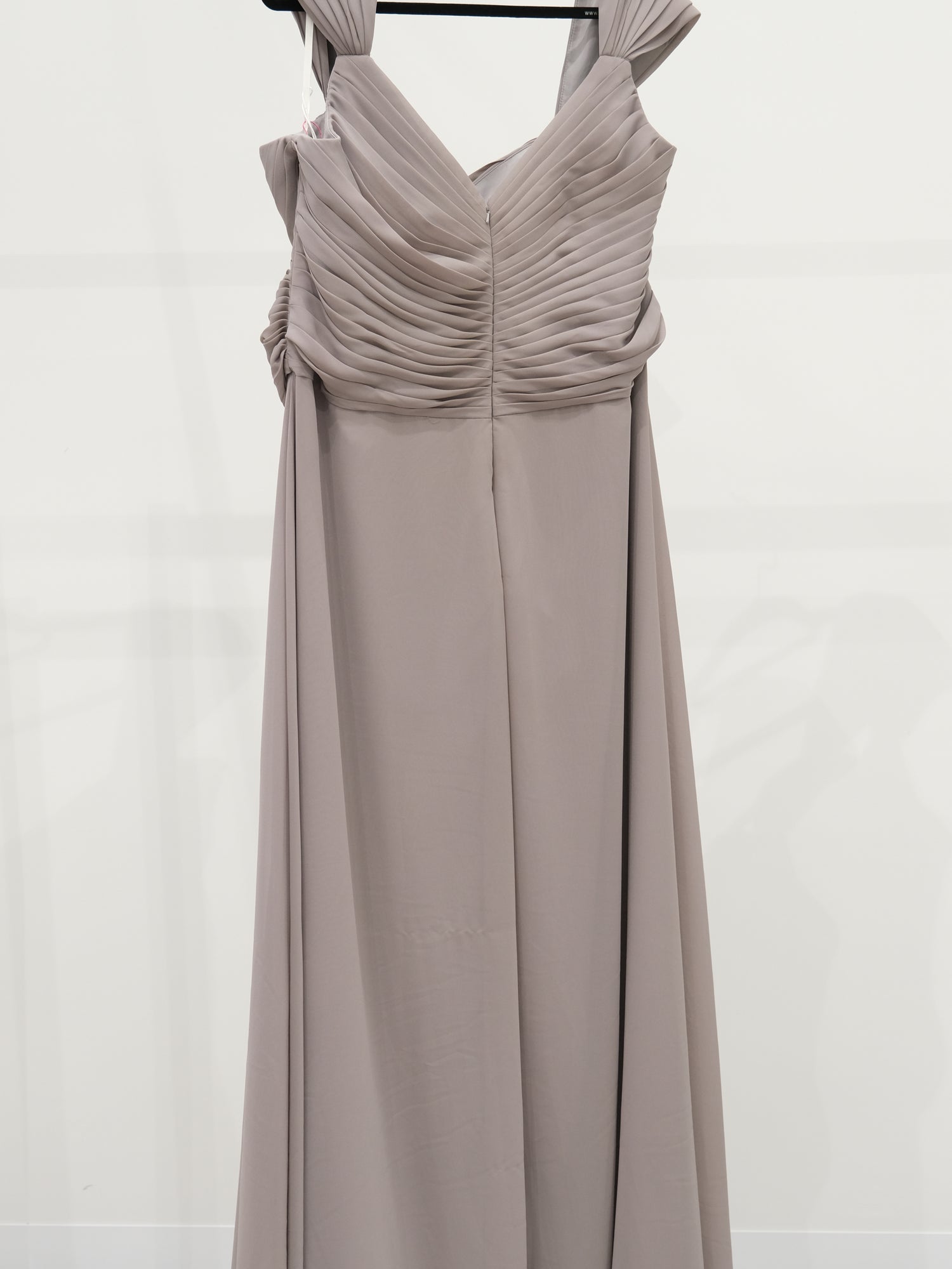 Grey Chiffon Dress with Cap sleeves, Size 22 is backordered and will ship as soon as it is back in stock.