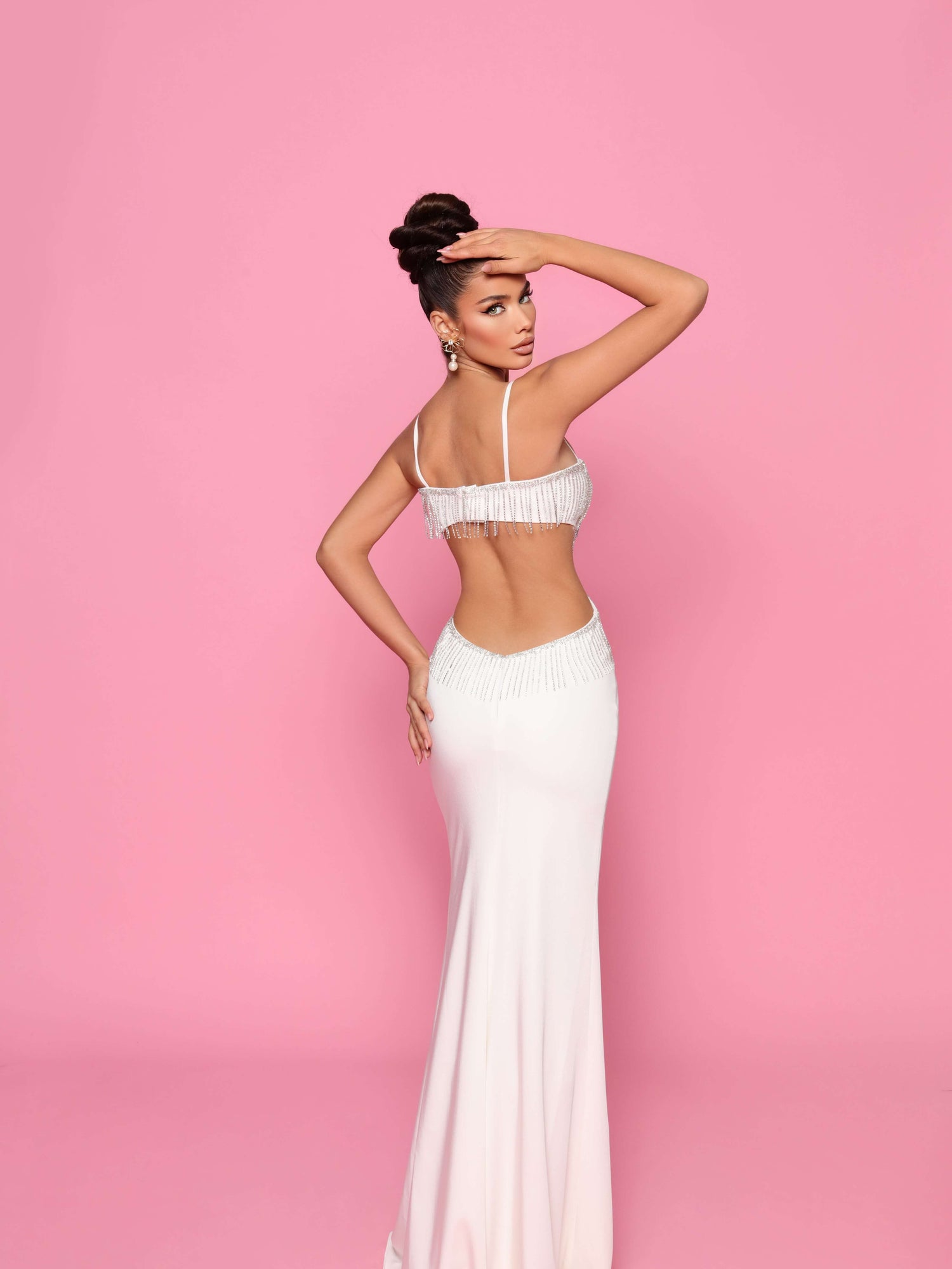 Step into the spotlight with the Nicoletta NP173 by Andrea and Leo, a masterful blend of elegance and daring design from the Fall 2023 Evening Collection. This fitted, long polyester gown embraces your silhouette with sleek precision, while delicate fringes add movement and allure to every step you take. The square neckline and slender straps frame your shoulders gracefully, complementing the seductive open back that reveals just the right amount of skin. A subtle slit enhances your stride, allowing you to glide effortlessly through any event. Crafted for unforgettable evenings, Nicoletta NP173 transforms your presence into pure sophistication and confidence.